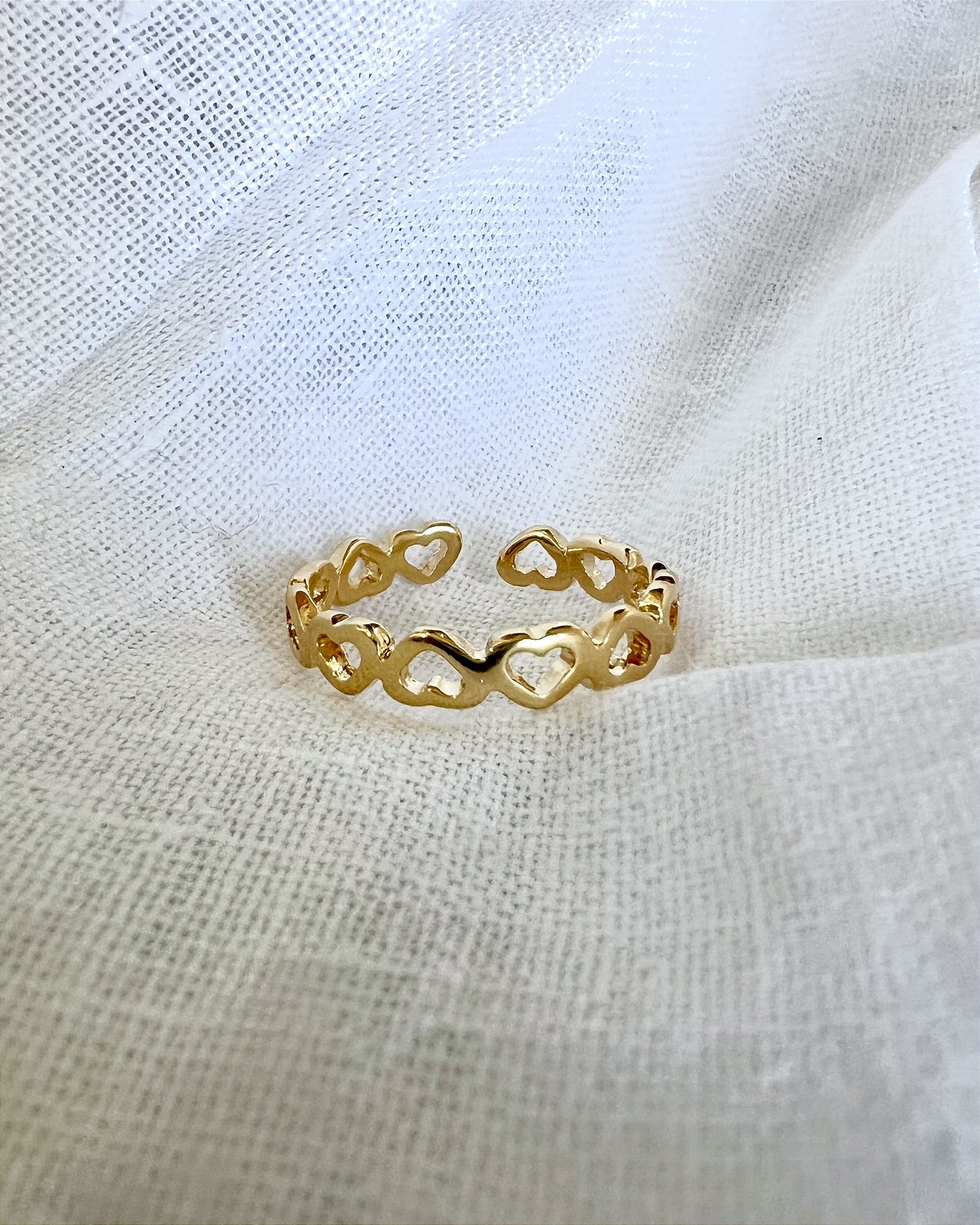 Anel fino de corações lado a lado, charmoso e delicado! Regulável para ficar confortável em todos os tamanhos!