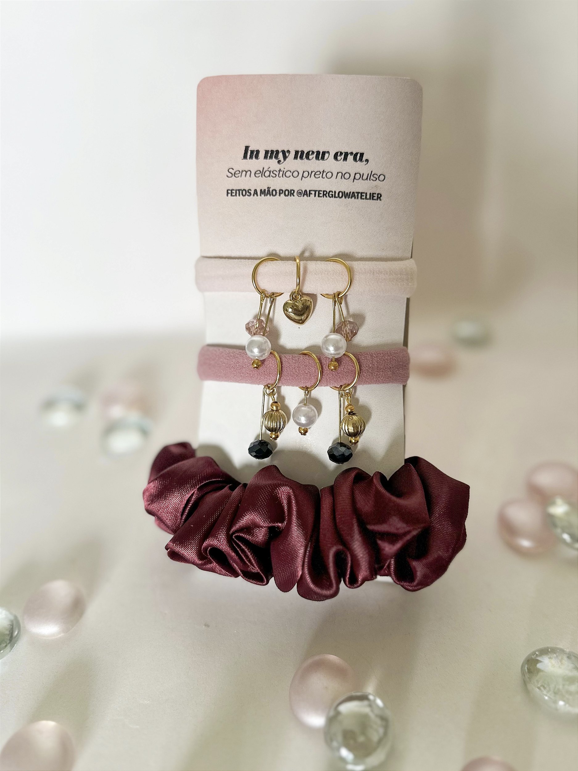 Kit com 2 Elásticos de cabelo com pingentes + 1 Scrunchie, super resistentes e lindos, elásticos feitos para não arrebentar o cabelo e nem marcar os fios.