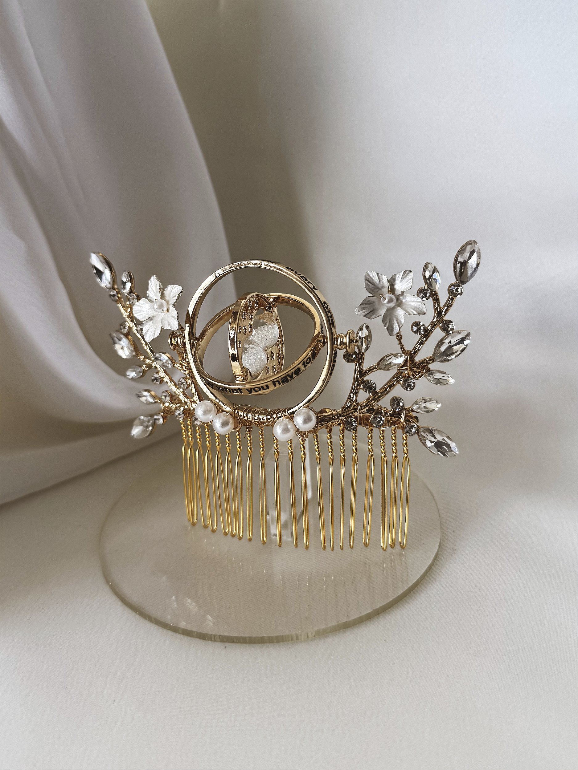 A Peça de cabelo Time Turner, é feita especialmente para as amantes de Harry Potter que querem trazer essa parte tão especial de sua história para o dia mais especial de suas vidas.