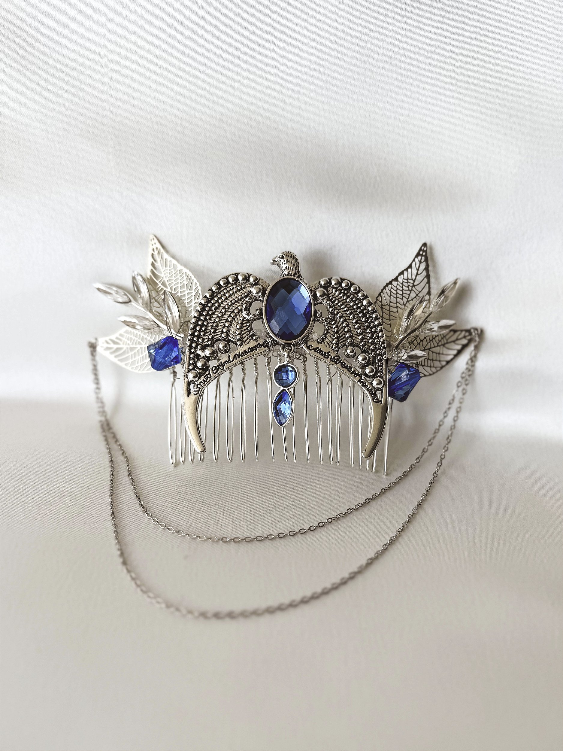 Jóia para o cabelo, diadema de Ravenclaw, fio de metal copper wire importado, ramos com pedras, pedra acrílica azul, folhas pratas, pente de metal prata. Pode ser usado em coques, penteados semi-presos ou soltos.